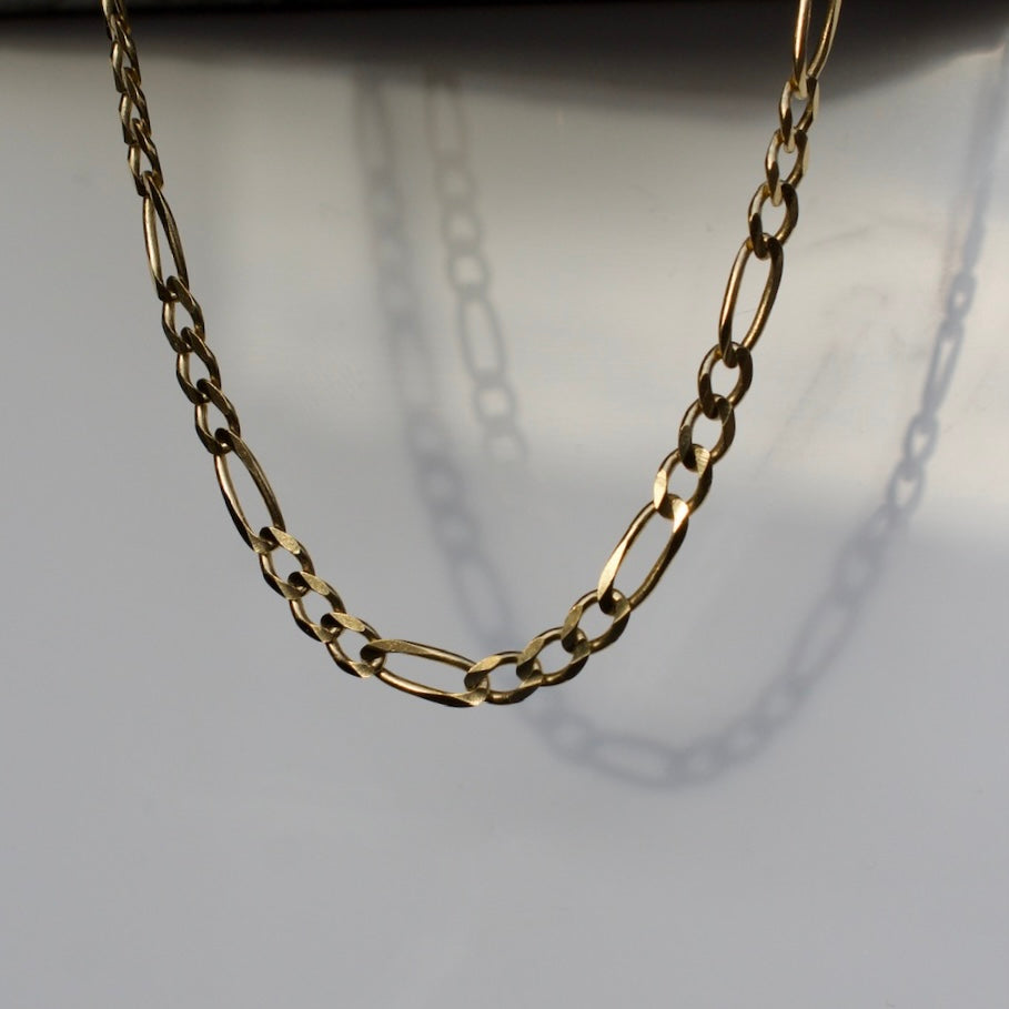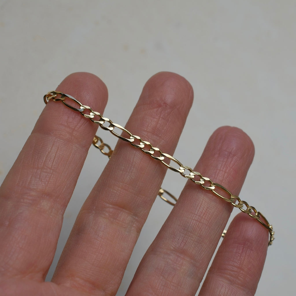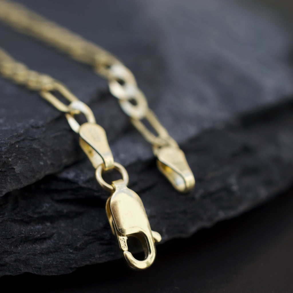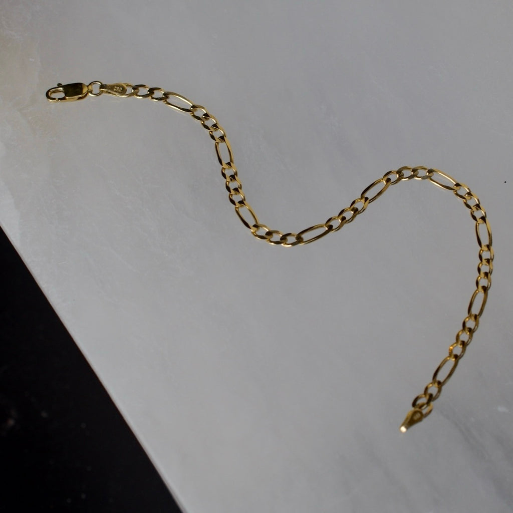 Figaro, Figaro! Wherefore art thou, Figaro? These chains have such a particular cool, who wouldn’t want a figaro? No need to start shouting from balconies, though—treat yourself to this link that has stood the test of time and is never out of style. This figaro is for those of you who aren't playing. With a nice weight of solid gold, it feels as good on as it looks. You might find yourself walking with a little more swagger.