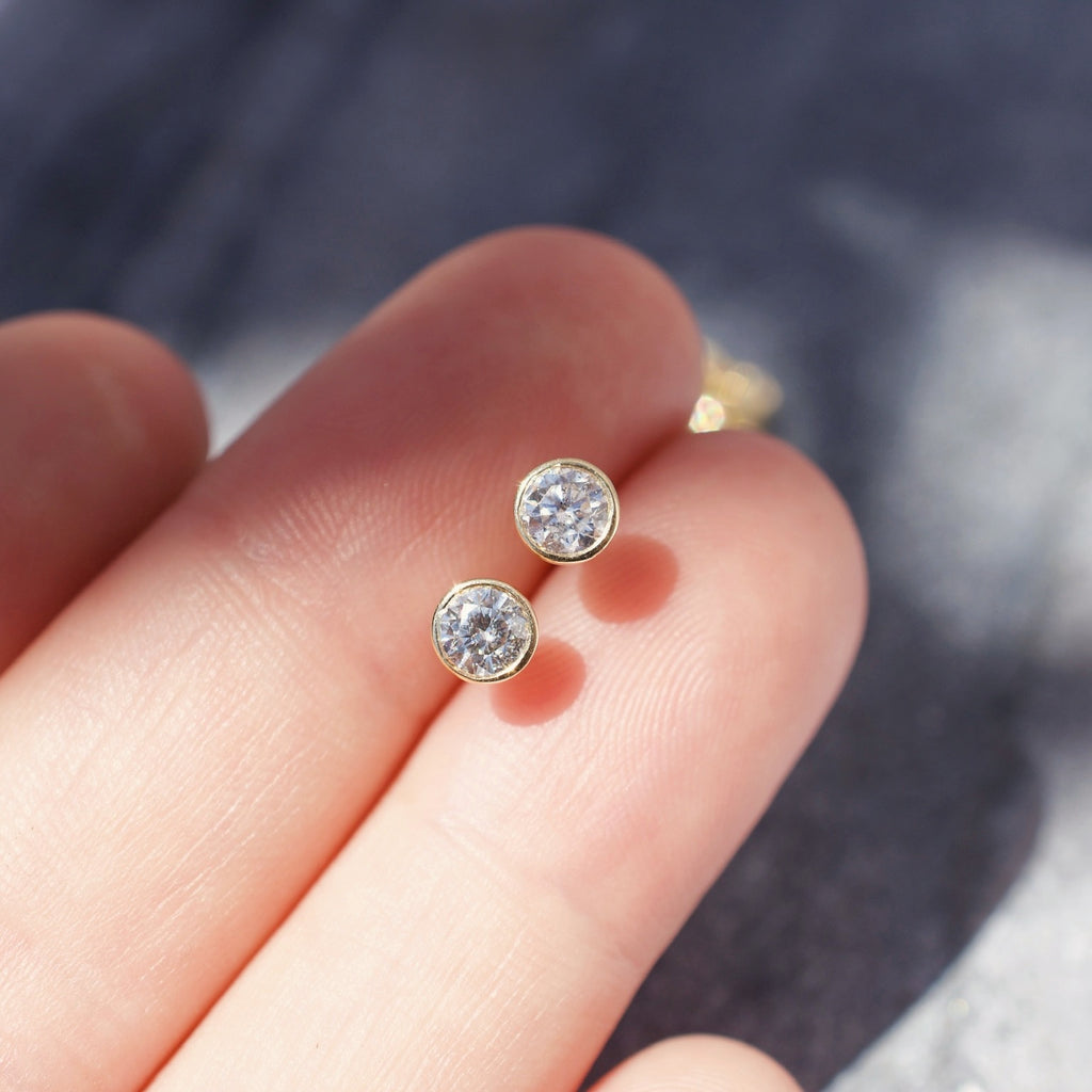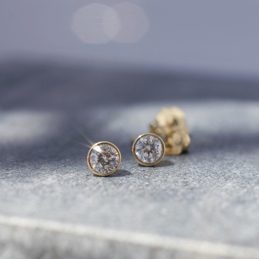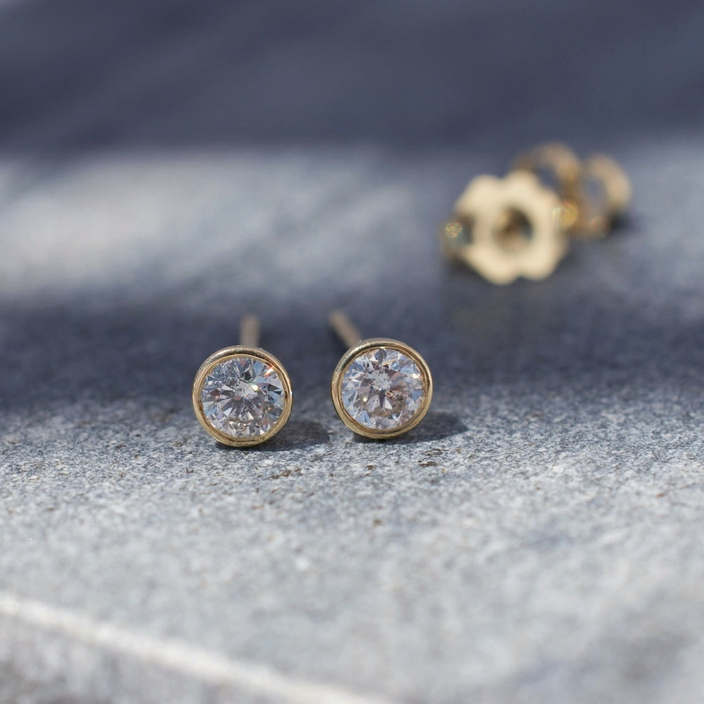 Bezel set diamond earrings are a true classic— the perfect gift for yourself or a loved one. Bright and timeless, these studs add just the right amount of shine for any occasion.