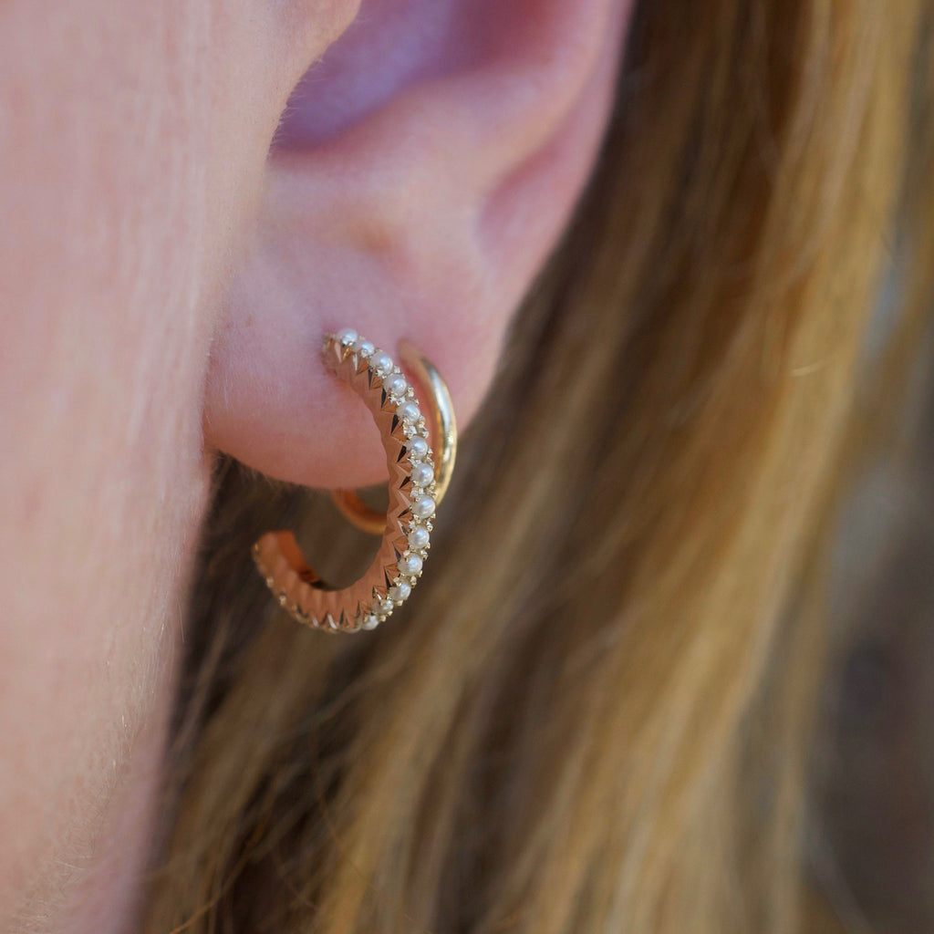 *Note: Pearls are delicate and should be worn with care. We recommend wearing this earring alone (not stacking) and removing it for any strenuous activity. Water is fine, but impact will scratch the pearls. Damaged pearls can be replaced for a small fee.