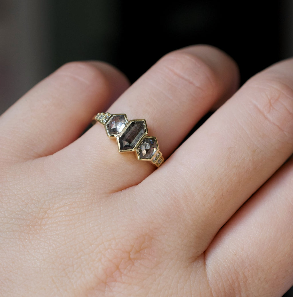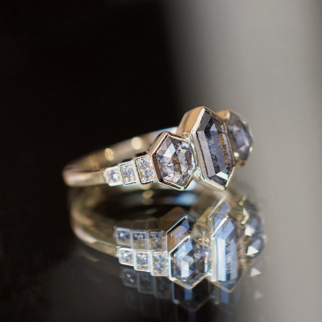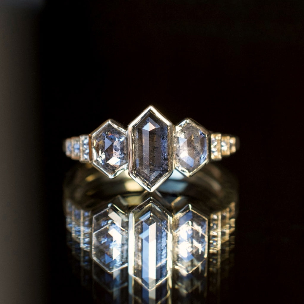 • 3 salt and pepper hexagon diamonds
