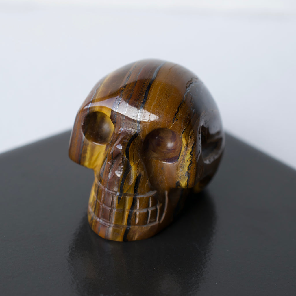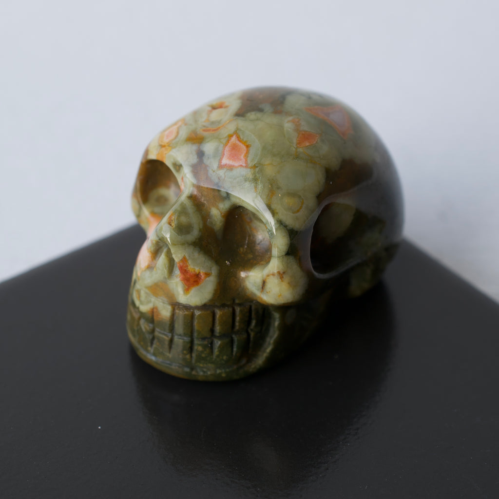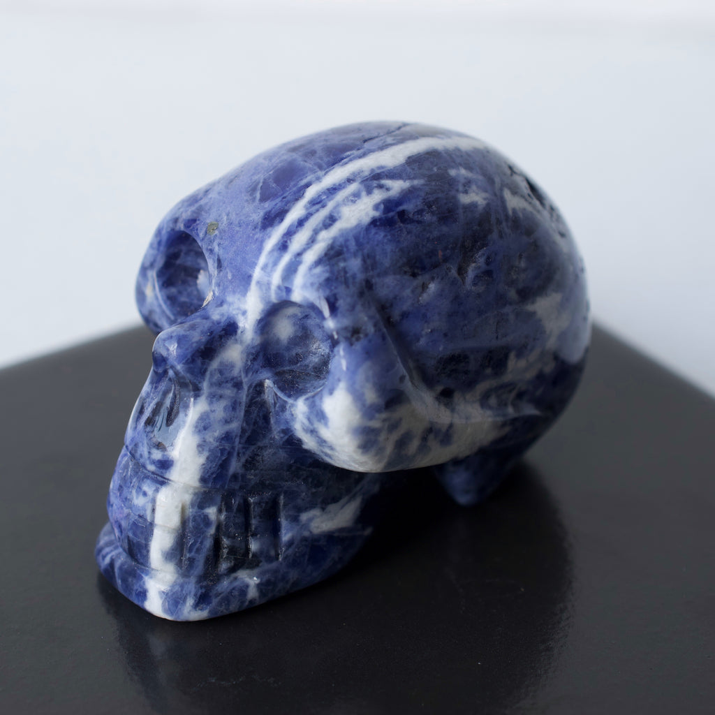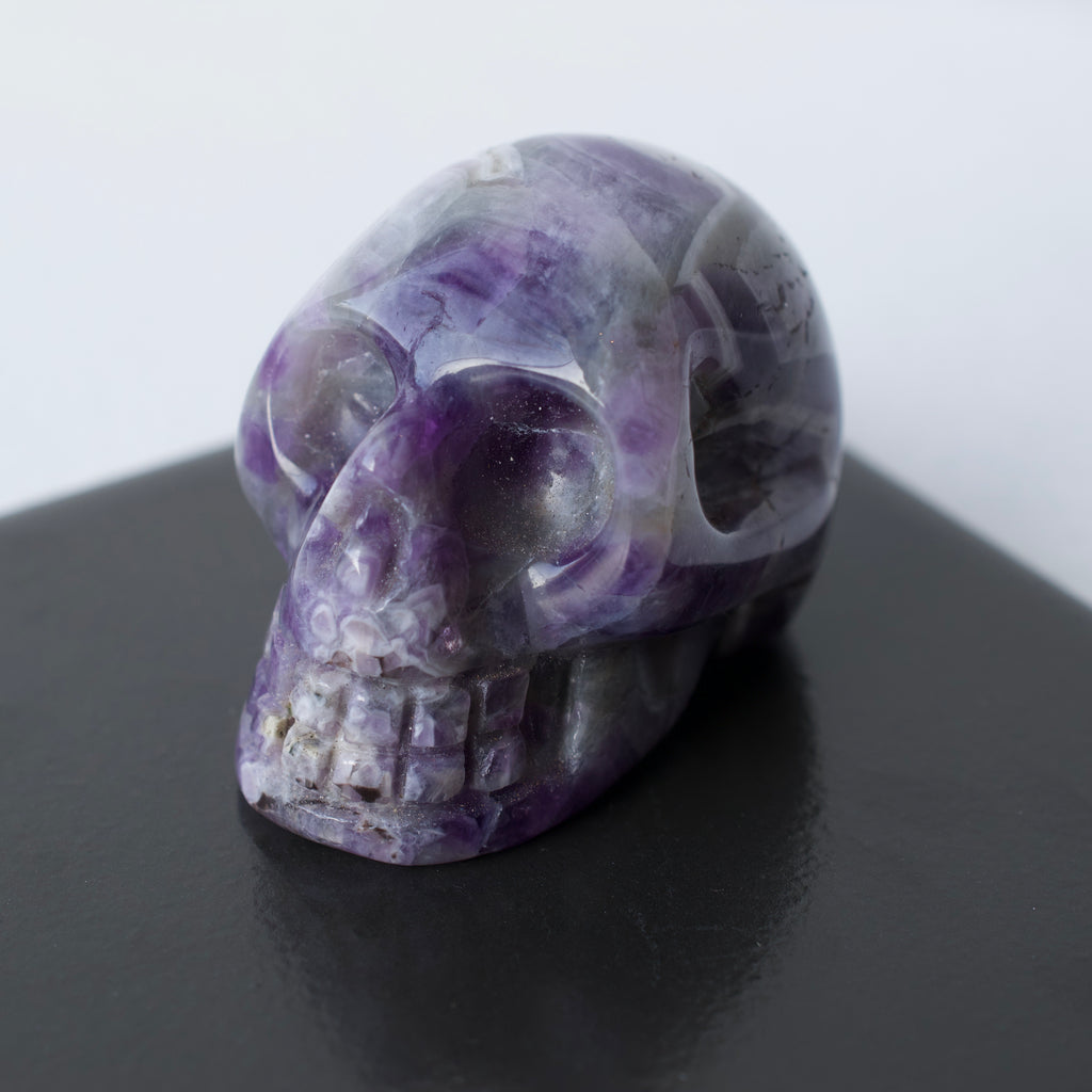 A hand carved and polished skull made out of healing stone.