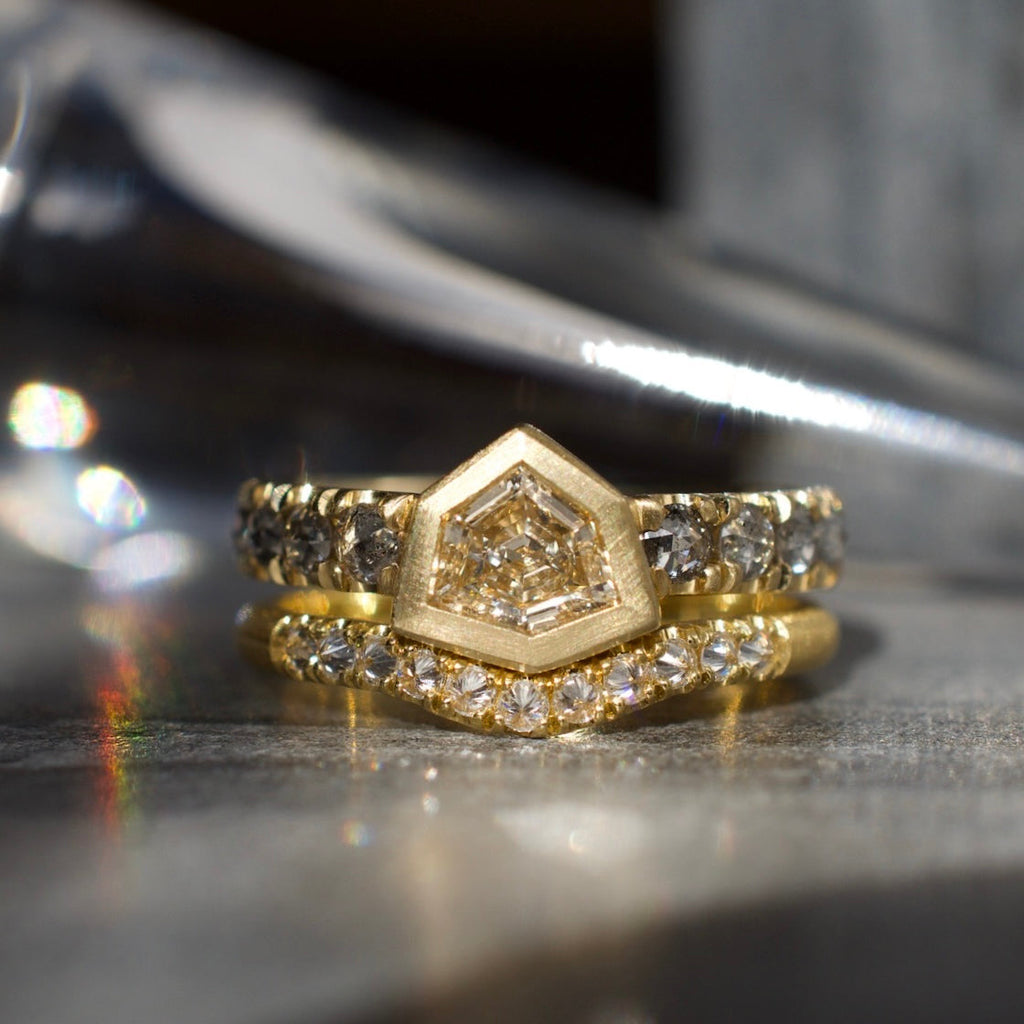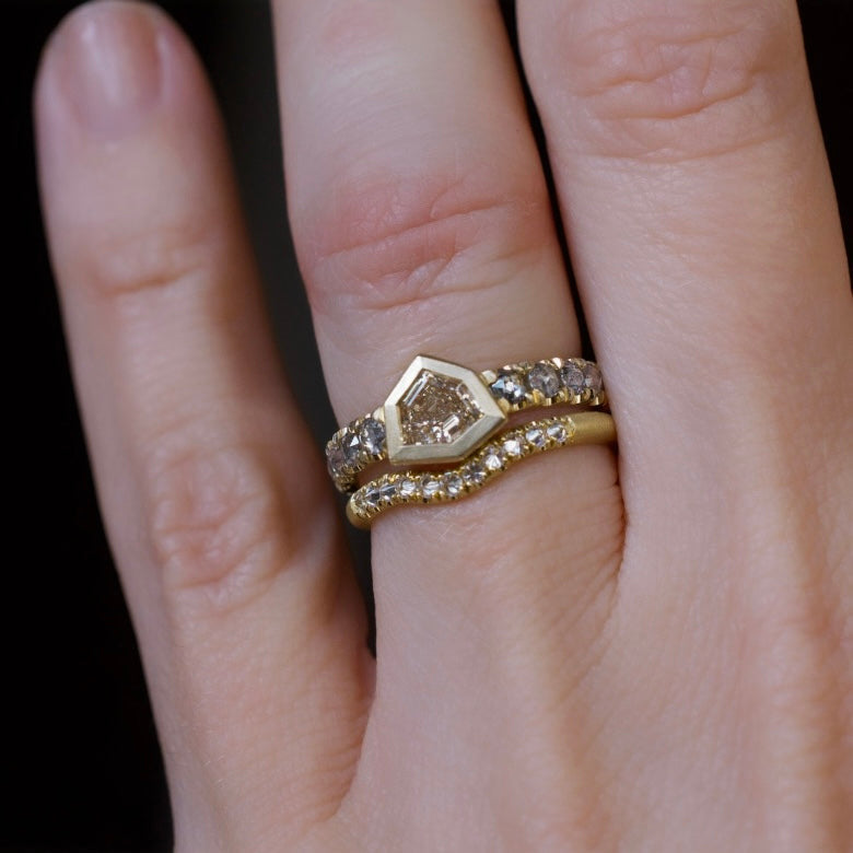 *Inverted White Diamond Band is pictured with the Diamond Shield Ring by Elizabeth Street.