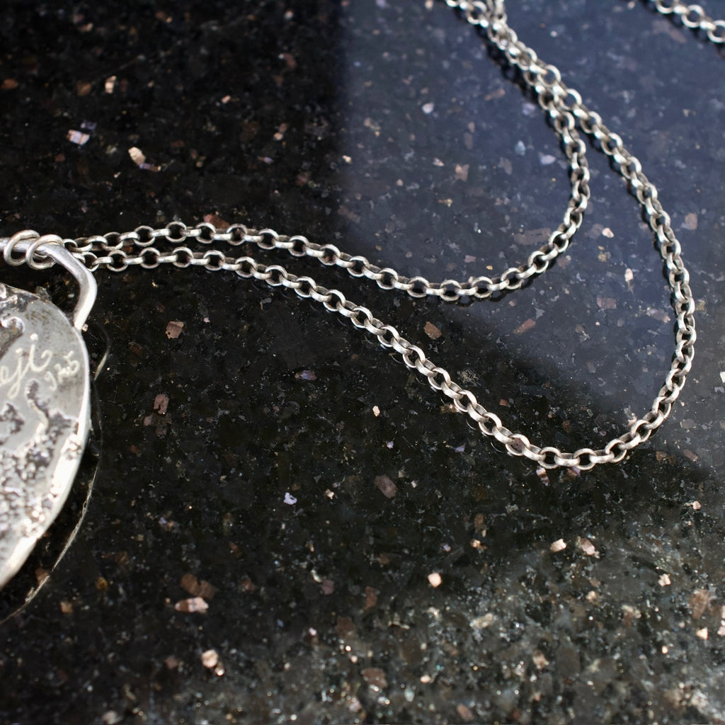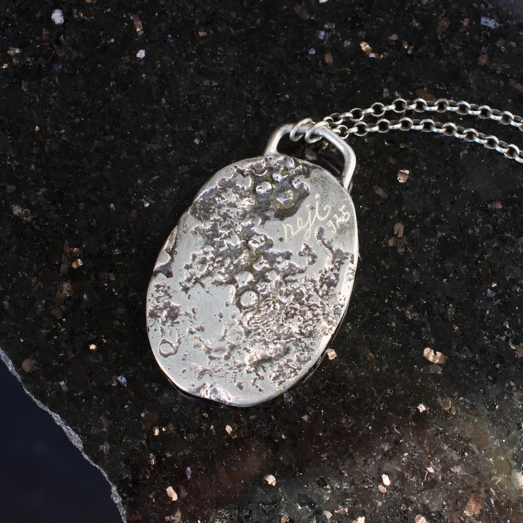 Pendant measures 1 1/4" wide x 1 3/4" long, including bail
