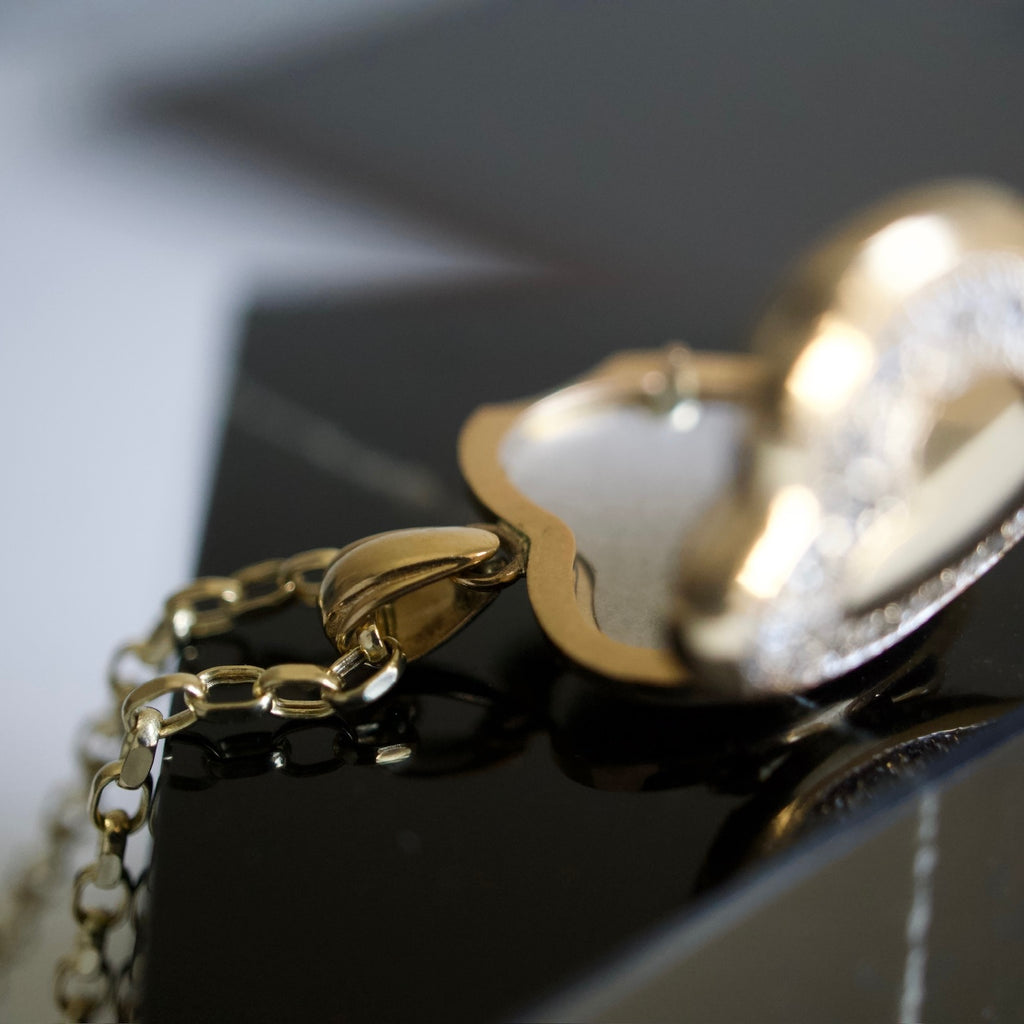 Locket on 14k yellow gold 22" 2mm faceted oval cable chain
