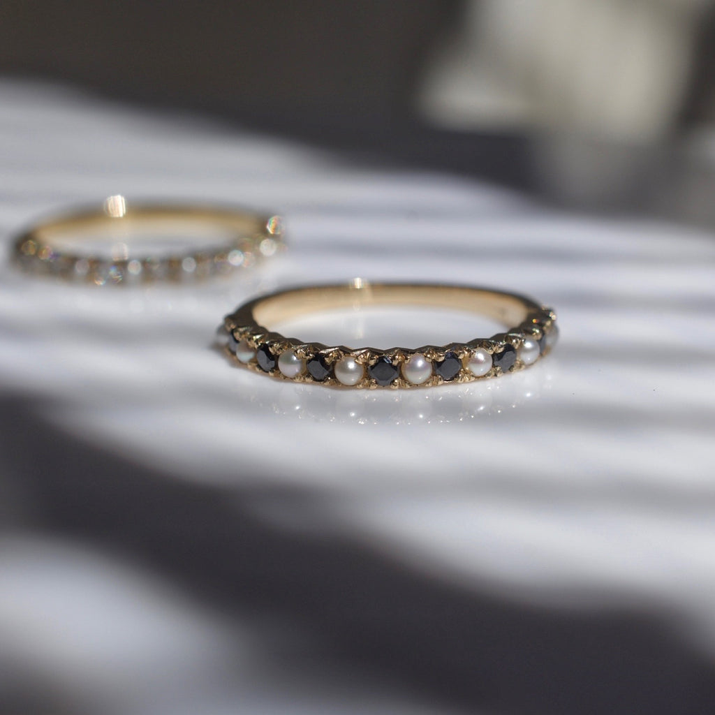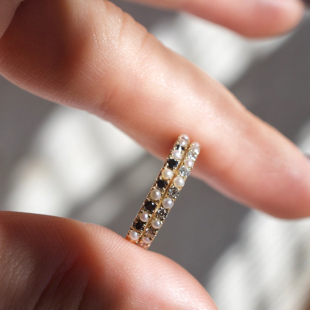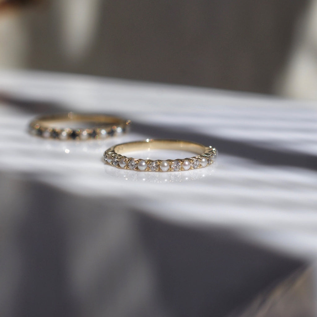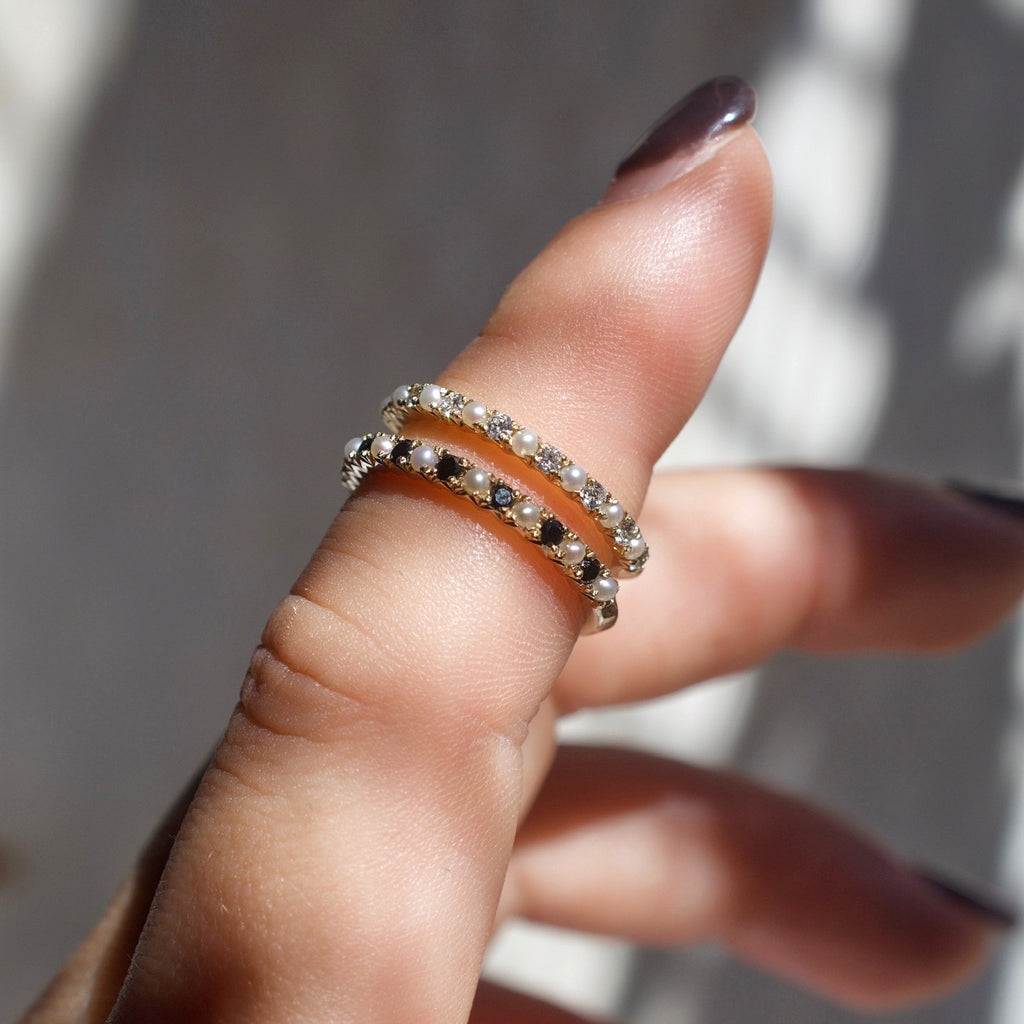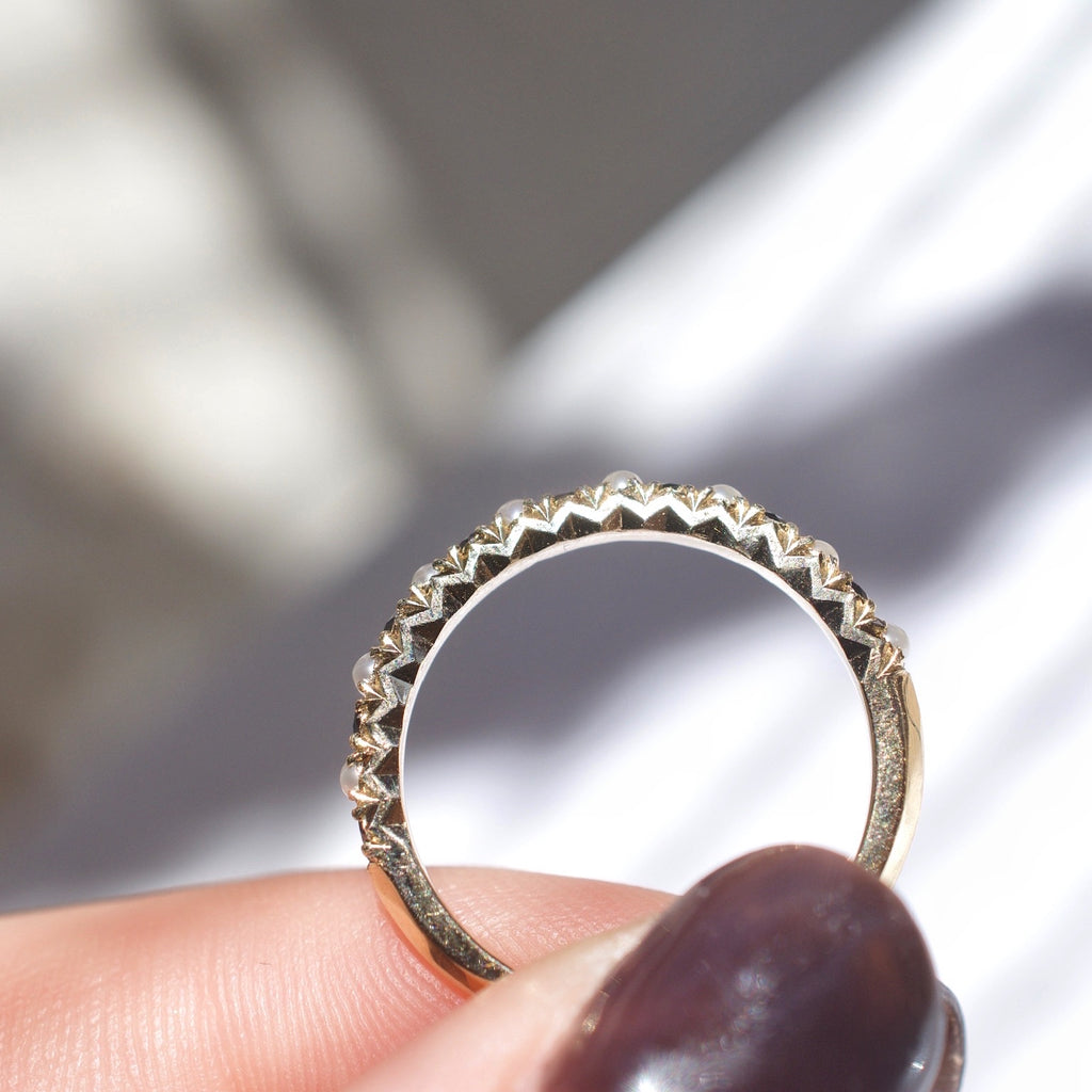 *Note: Pearls are delicate and should be worn with care. We recommend wearing this ring alone (not stacking) and removing it for any strenuous activity. Water is fine, but impact will scratch the pearls. Damaged pearls can be replaced for a small fee.